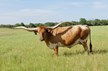 Foundation bred cow with long twisting horns
