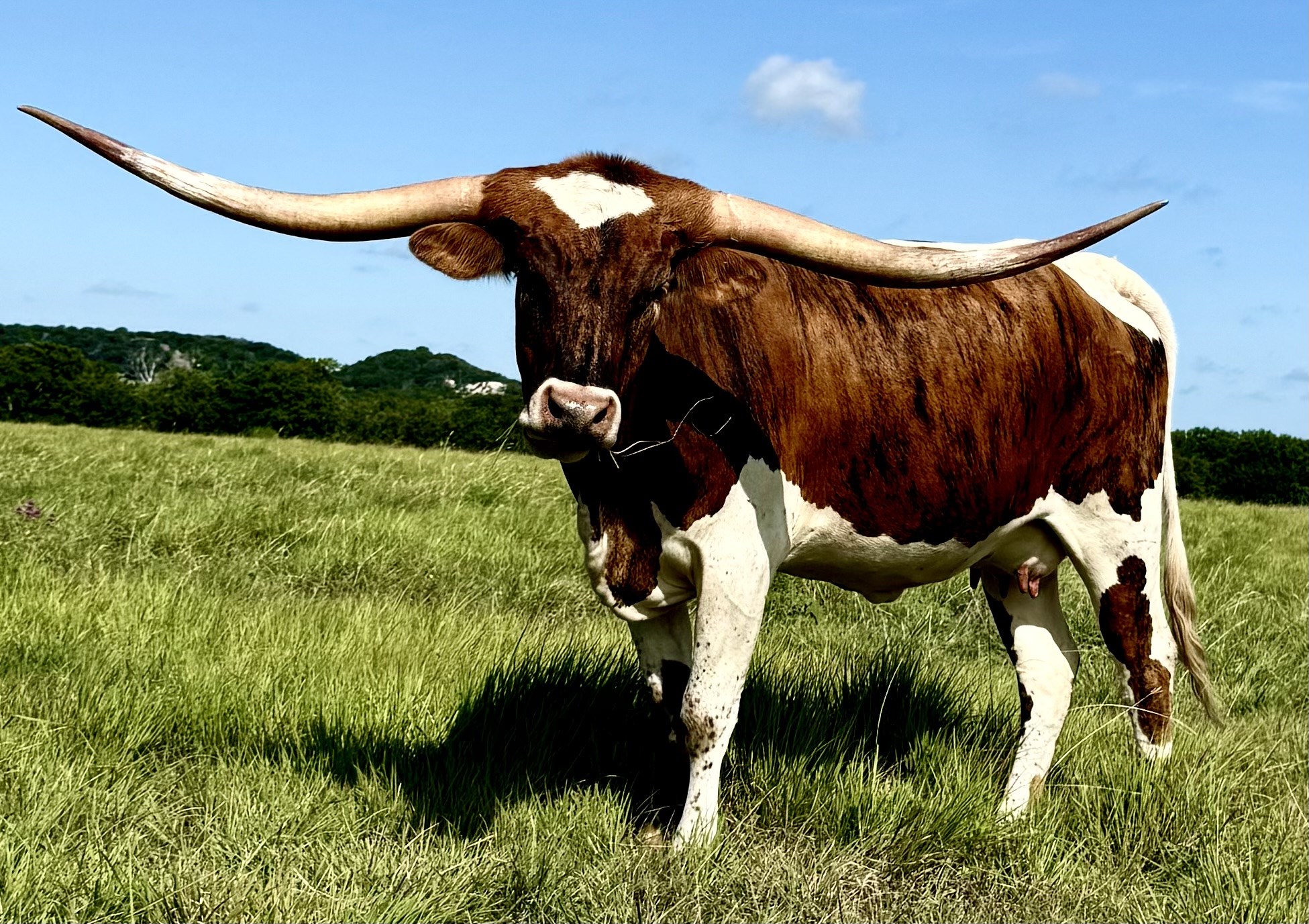 This looker has an unusual contrast of brindle layered on a line back pattern, with horns growing right angle-straight. Boasting a strong, round body with perfect proportion, Alice is destined to be a winner! Phenomenal genetics: Rebel HR, Awesome Reb, Jamakizm and Cowboy Tuff Chex, to name a few.