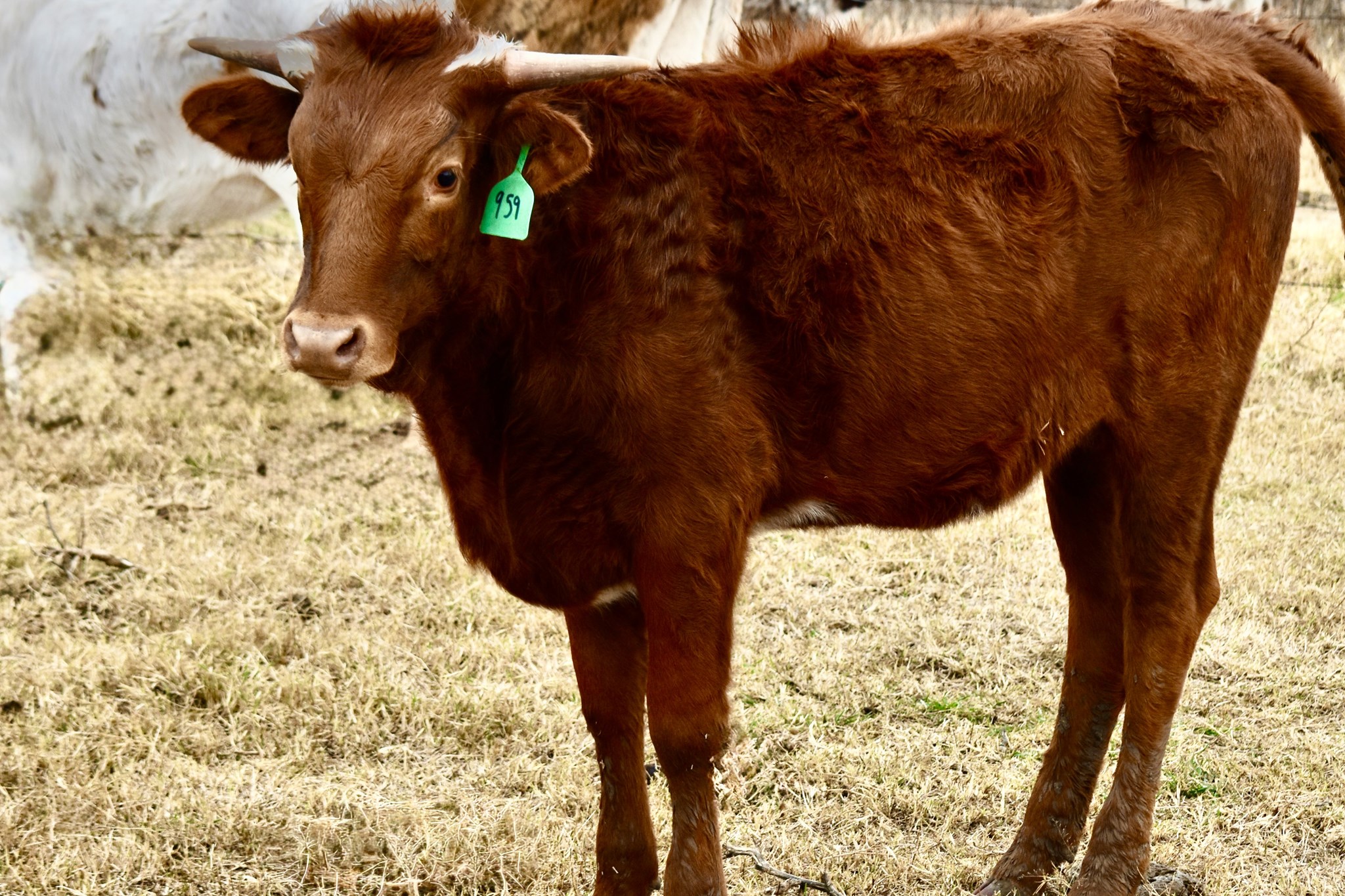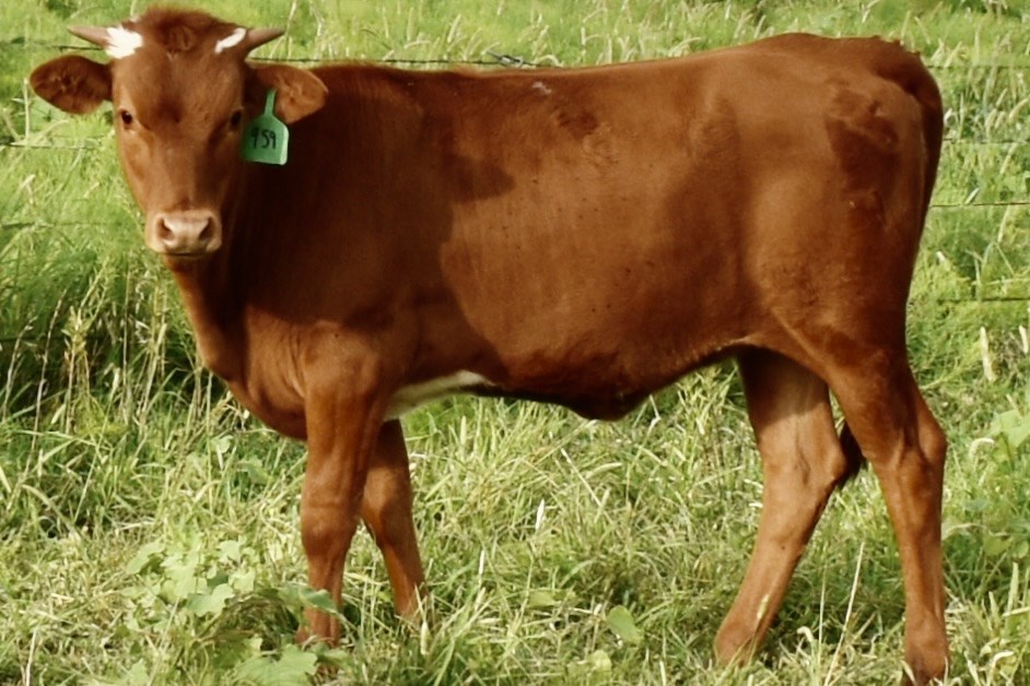 This heifer's sire is M7 Grate (Bwana Chex X BL Monika Ellsie). This daughter has a great set of genetics behind her. Grate Iron is famous as a multiple futurity winner and he weighed almost 1500 lbs at 18m. He will most assuredly add size and conformation to his offspring PLUS potentially convert a vertical to lateral TTT hornset. This trait would be powerful.