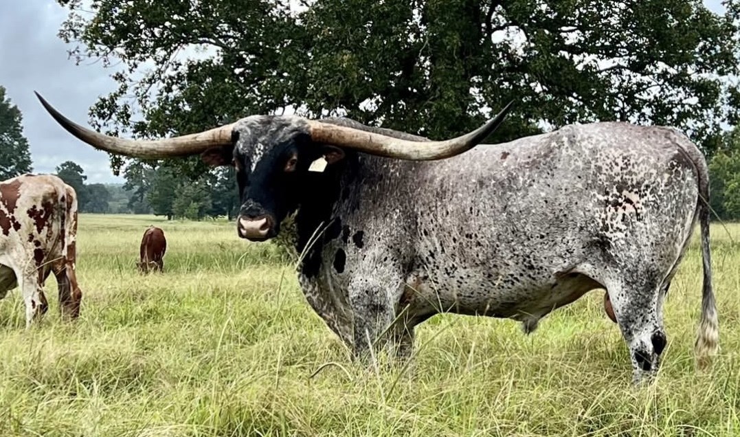 The first/only bull out of Guinness World record >110" 3S Danica - what more needs to be said? Danica's dam 3S Touchdown Tari is >100” herself! The maternal pedigree of this bull is one of a kind, including Century’s grand-dam Flash of Bonai whose 92" really adds twist to his offspring. The LM herd sire is an excellent outcross to any longhorn herd.